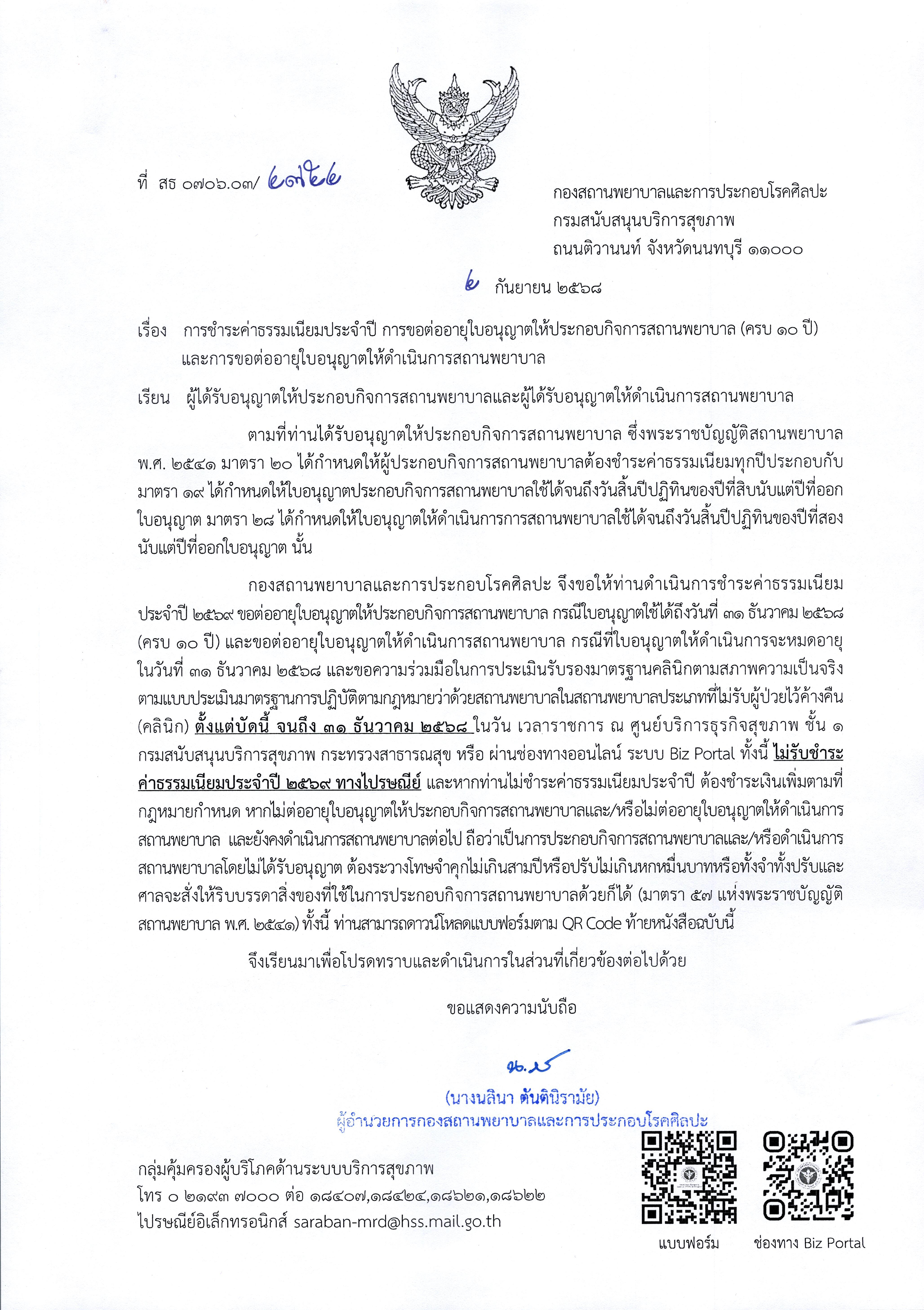 (คลินิก) แจ้งชำระค่าธรรมเนียม ปี 2569/ ต่ออายุใบอนุญาต ส.พ.7, ส.พ.19 (สิ้นอายุ 31 ธ.ค. 68)