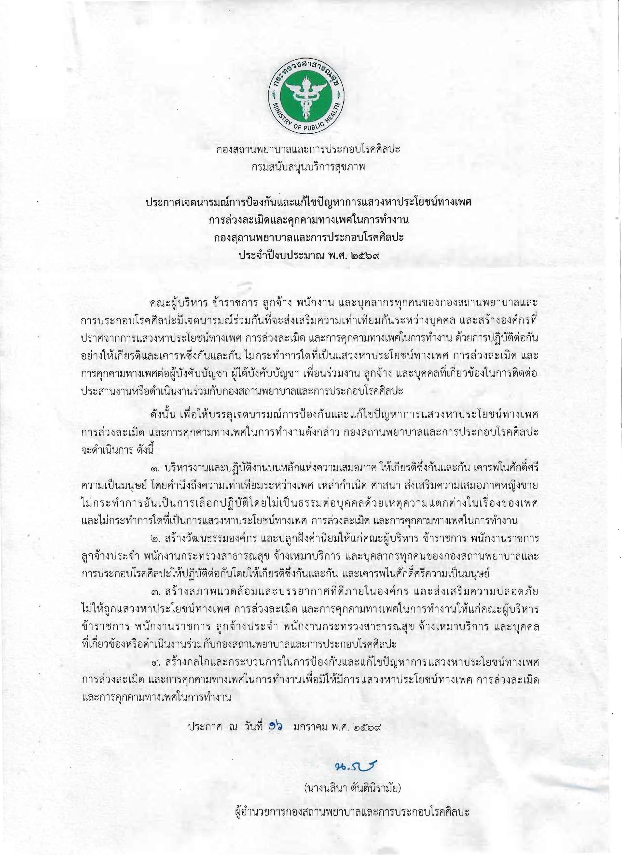 ลงนามประกาศเจตนารมณ์ฯ กองสถานพยาบาลและการประกอบโรคศิลปะ ประจำปีงบประมาณ พ.ศ. 2569