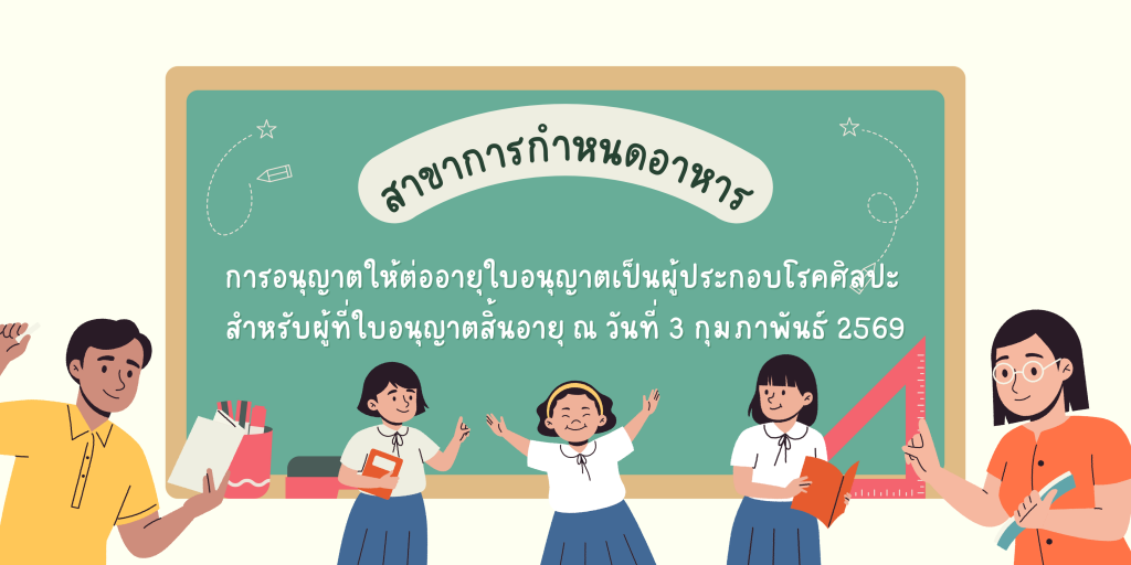 ประกาศคณะกรรมการวิชาชีพสาขาการกำหนดอาหาร เรื่อง อนุญาตให้ต่ออายุใบอนุญาตเป็นผู้ประกอบโรคศิลปะสาขาการกำหนดอาหาร สำหรับผู้ที่ใบอนุญาตสิ้นอายุ ณ วันที่ 3 กุมภาพันธ์ พ.ศ. 2569 >>คลิกที่นี่<<