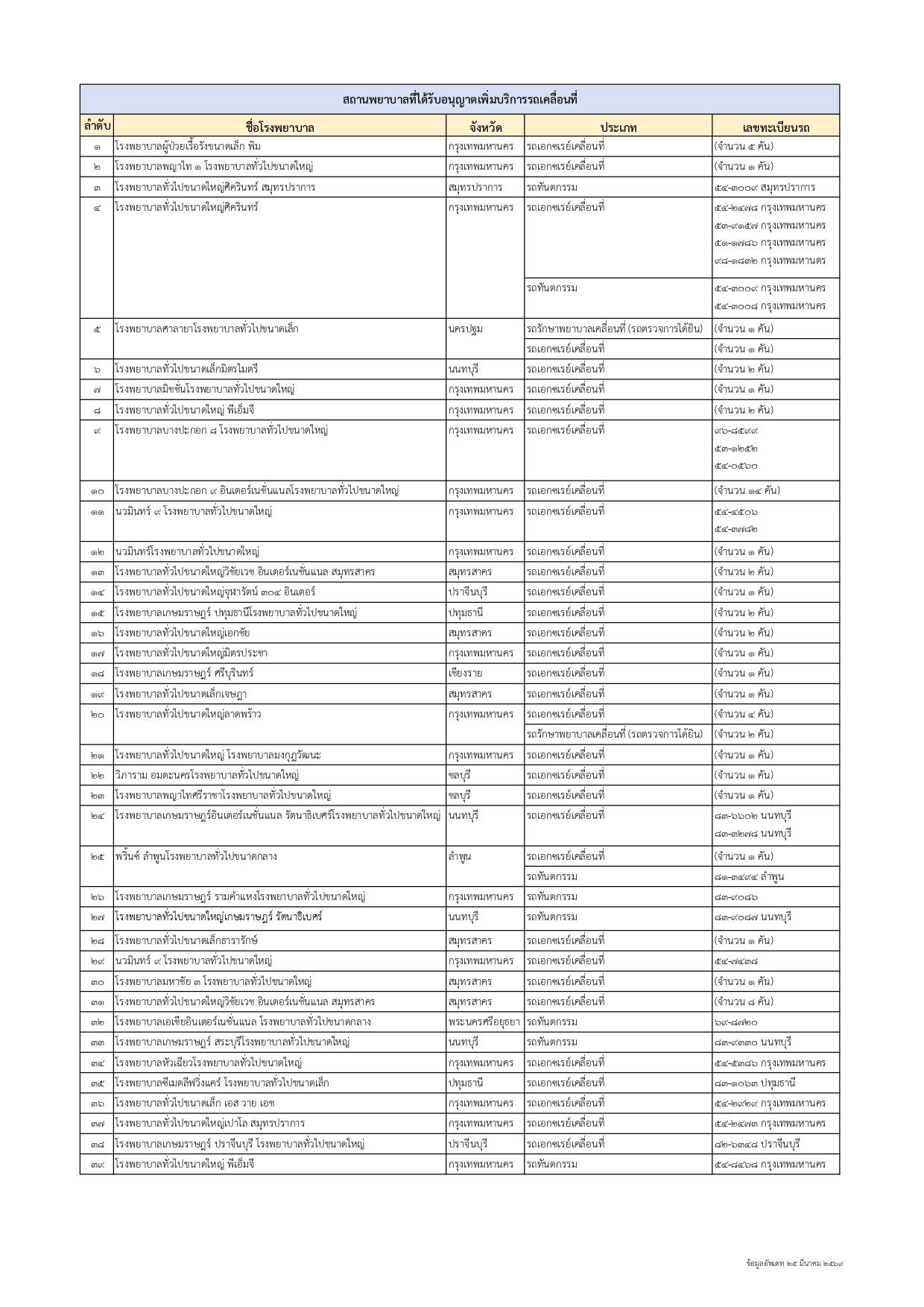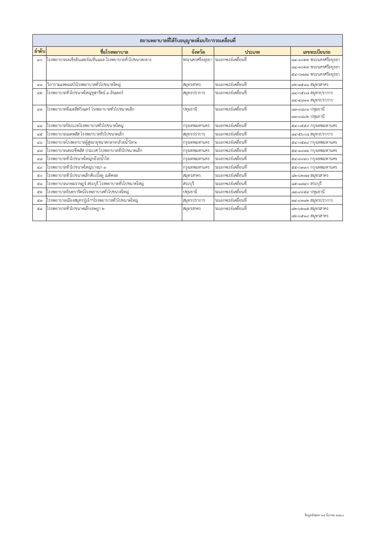 สถานพยาบาลที่ได้รับอนุญาตเพิ่มบริการรถเคลื่อนที่ (โรงพยาบาล)